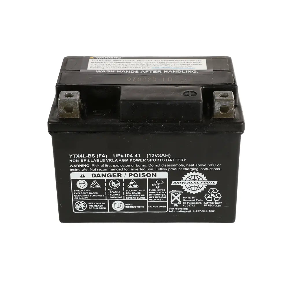 This 12V YG4L-BS battery fits Vespa ET2 and Genuine RoughHouse 50 and Buddy 50 scooters. It comes prefilled, pre-charged and ready to install! Can be mounted in multiple positions, but not upside down.