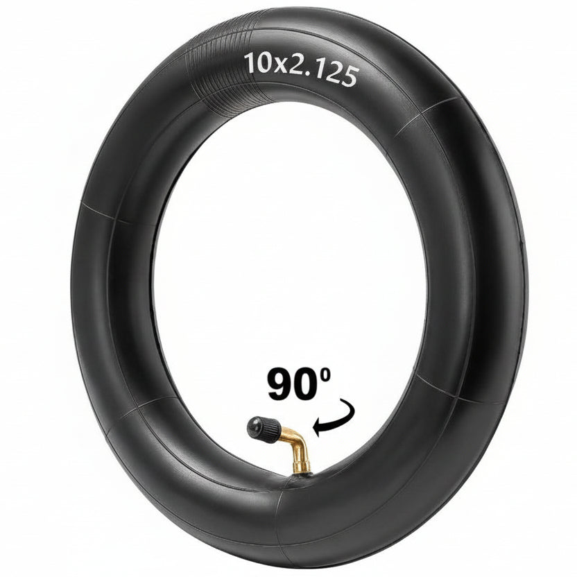 This Green Line 10x2.125 Inner Tube is the ideal solution for riders dealing with recessed rims or hub motors. Featuring a 90-degree bent valve stem, it allows for easy access with any standard pump, eliminating the struggle of trying to fit a straight valve into tight spaces. Built from heavy-duty rubber, it provides excellent vibration dampening and puncture resistance.